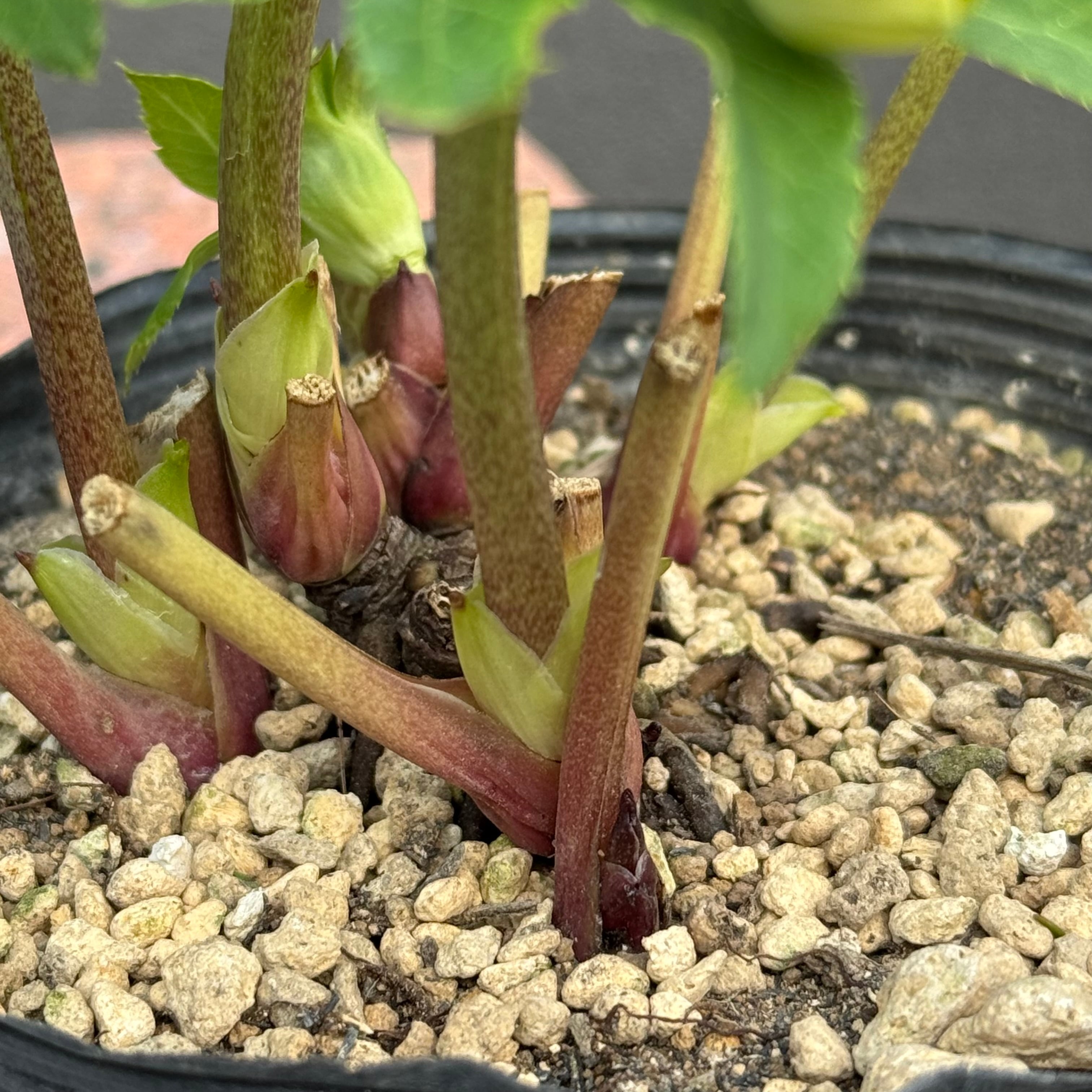 花径2.8cm、開花1個、蕾12個、脇芽確認済み、13.5cmロングポット。