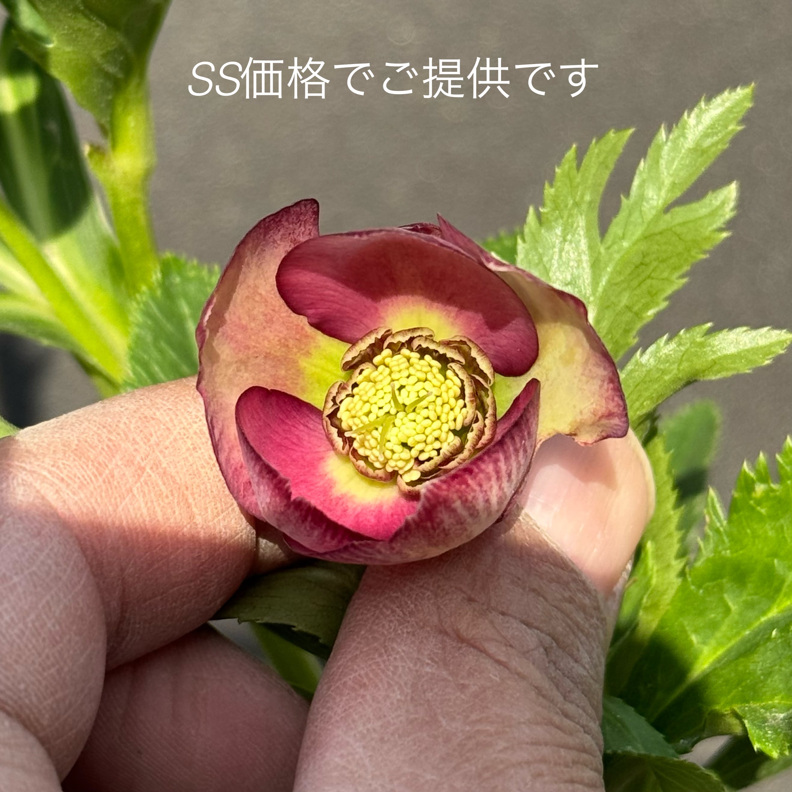 加藤農園クリスマスローズ開花株 認定グロッシーカラー小輪SS判定レッドバイカラーka26002